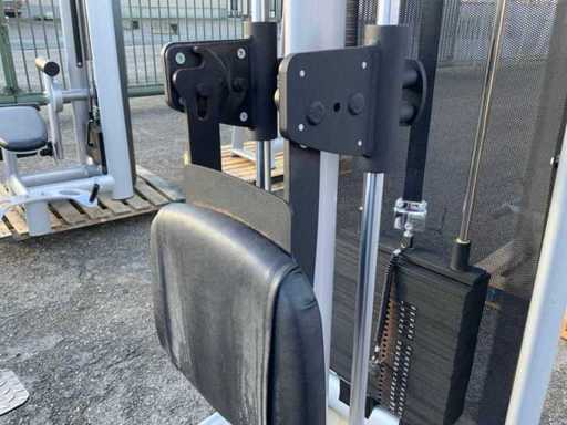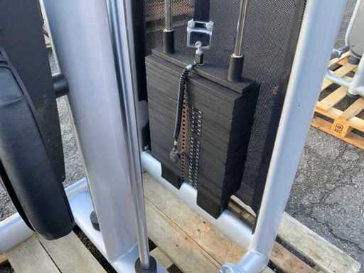 Poulie lat professionnelle de la gamme Signum de haute qualité GYM80, adaptée à un usage commercial intensif. Ce dispositif de renforcement est conçu pour entraîner efficacement les muscles larges du dos (latissimus dorsi) et les groupes musculaires associés. La machine est équipée d’un système de câbles à passage lisse et d’une structure robuste en acier, comme on pouvait s’y attendre de la marque allemande GYM80. Grâce aux supports ergonomiques du siège et des genoux, l’appareil offre une position d’entraînement stable et confortable pour les utilisateurs de différentes tailles.