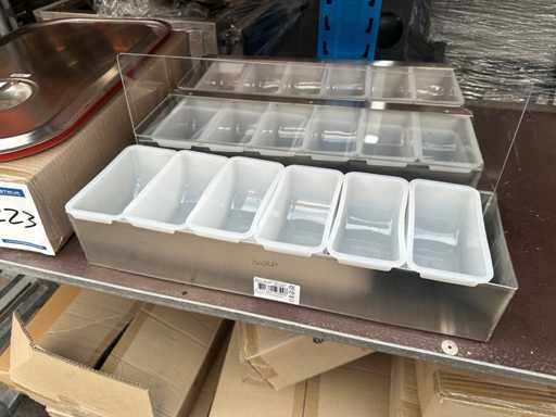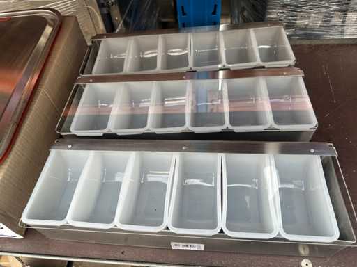 Composé de récipients en polypropylène et en acier inoxydable à trois ingrédients et de six couvercles gastronomes 1/1 avec fermeture en silicone