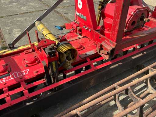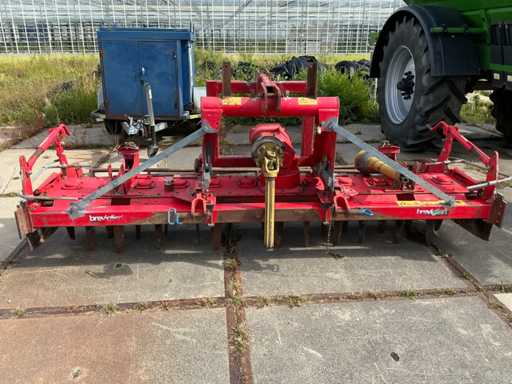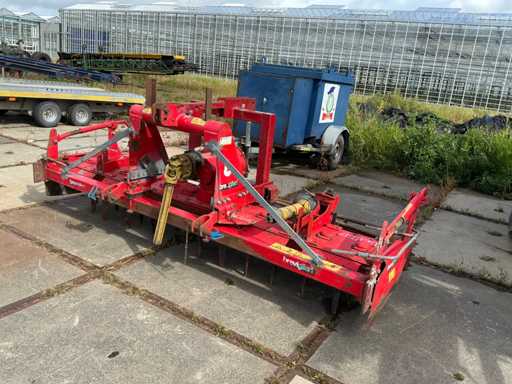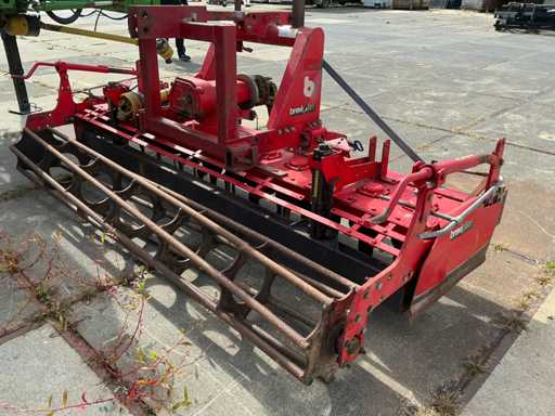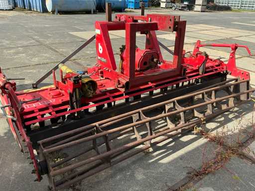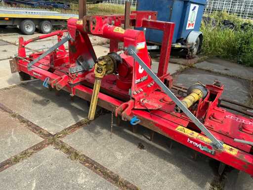 Porté en 3 points, entraînement par arbre de prise de force, équipé d’une prise de force BAE continue et d’un rouleau à cage