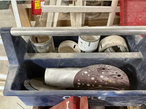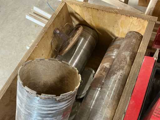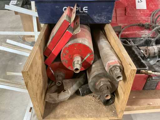 6x forets diamantés de différents diamètres, récipient sous pression et support de forage pneumatique