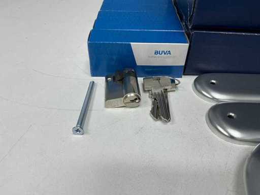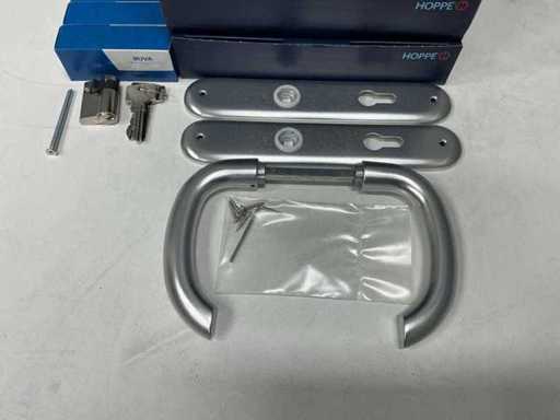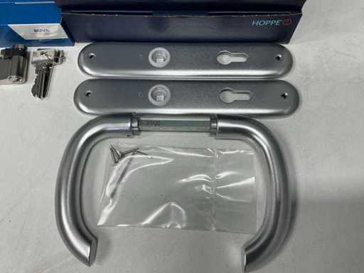 Ensemble complet avec poignée de porte, bouclier, serrure - Hoppe ; Bouclier de porte, poignée - Buva ; Serrure