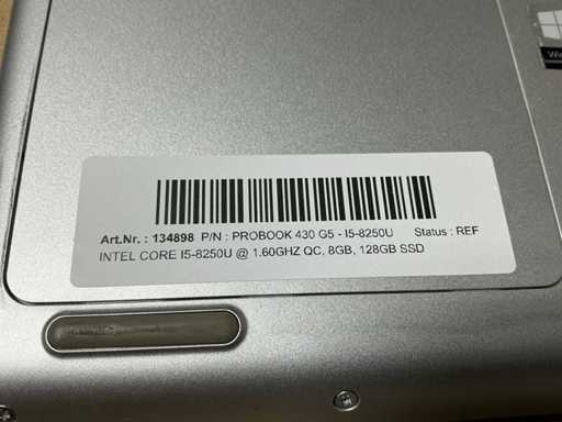 Ordinateurs portables, HP PROBOOK 430 G5, CPU : Intel Core i5-82050U @ QC 1,60GHz, EM : 8 Go, SSD : 128 Go, sans adaptateur (nettoyé et testé) [ID : 134898]