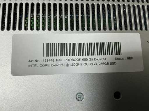 Ordinateurs portables, Probook 650 G5, CPU : Intel Core i5-8265U @1.60GHz QC, EM : 8 Go, SSD : 256 Go, Dommages cosmétiques : coin inférieur et supérieur gauche et emplacement de carte, pas d’adaptateur (nettoyé et testé) [ID : 138448]