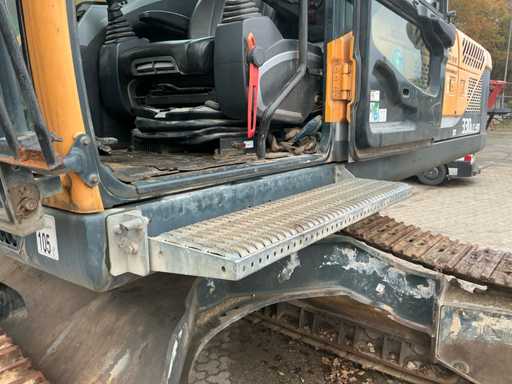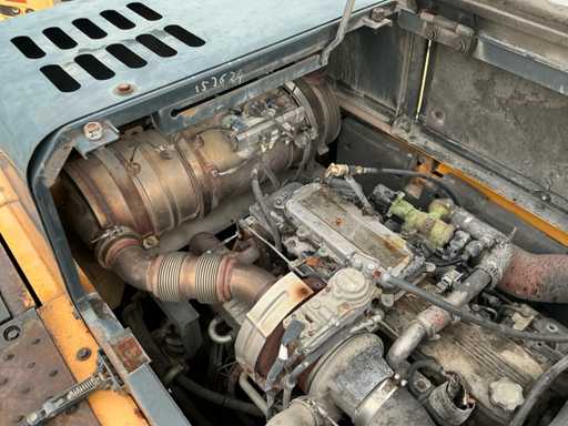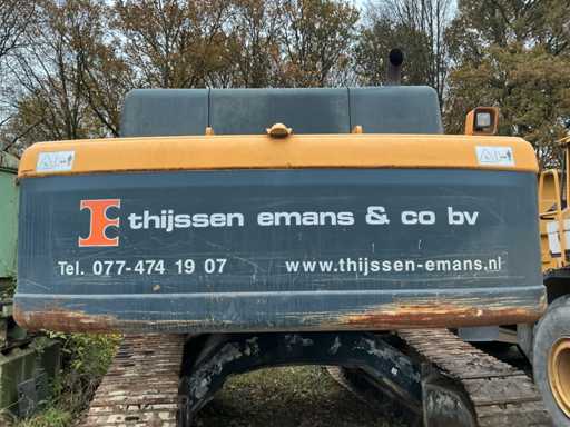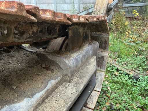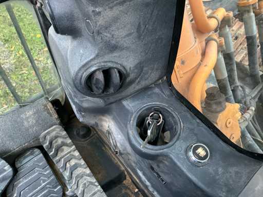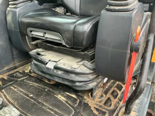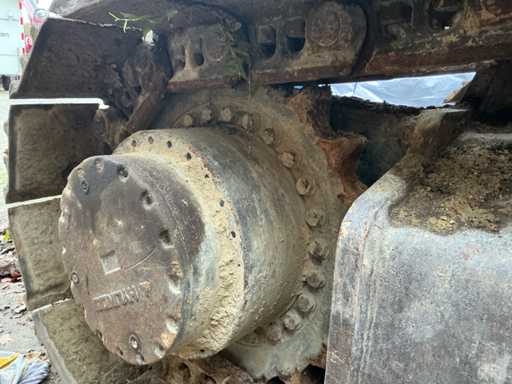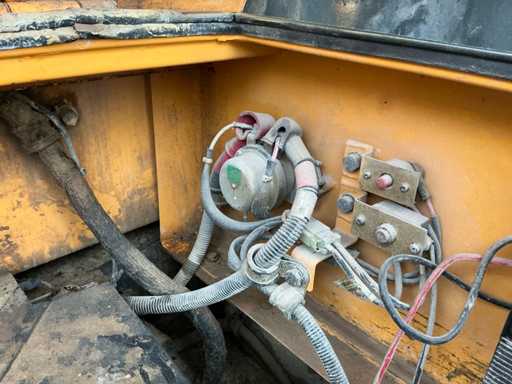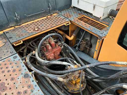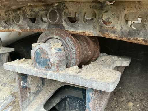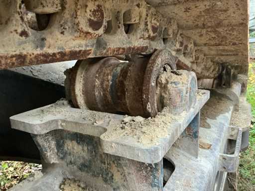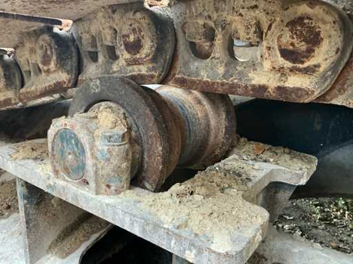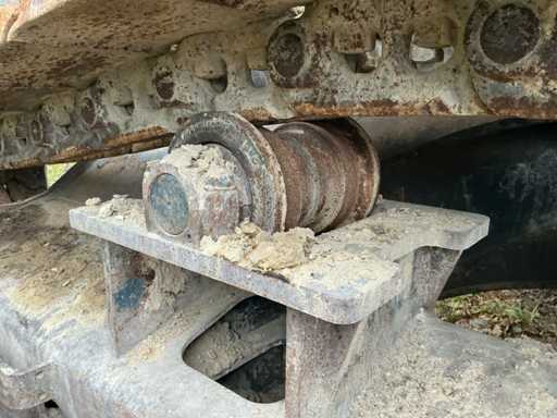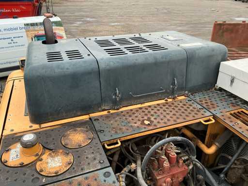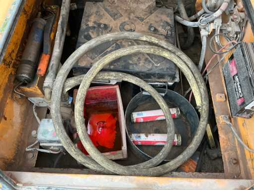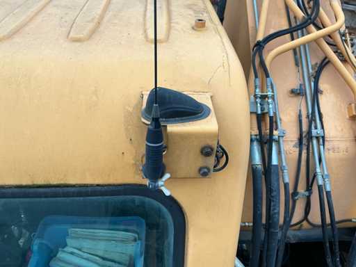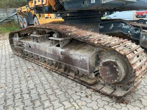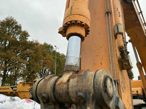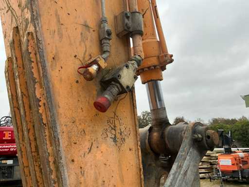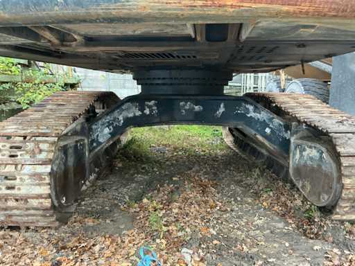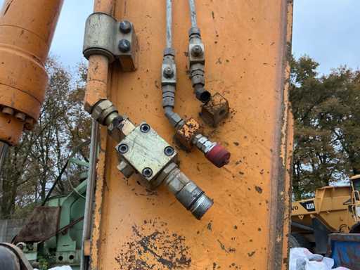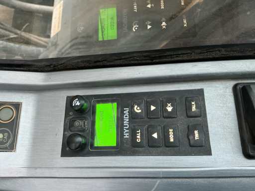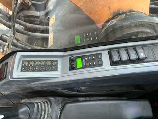 Équipé de : HYUNDAI R 330 LC-9A Robex à marche haute, Cummins QSC 8.3 turbo intercooler diesel, 6 cylindres, 213 kW à 1750 tr/min. avec la technologie common rail et EMR, répond aux exigences de gaz d’échappement de l’étage B du niveau TIER III, capacité 8300 cm³, poids opérationnel : 35 500 kg (avec sabots de chenille de 600 mm), capacité de réservoir 500 litres, pompe électrique de remplissage de carburant, système hydraulique : 2 pompes variables + 1 pompe à engrenages, débit maximal d’huile : 2 x 270 litres/min, pression maximale d’huile : 350 bar, puissance de suralimentation : 380 bar, capacité du système hydraulique : 330 litres, système informatique CAPO avancé, Équipé d’un frein pivotant à volets hydrauliques, d’un anneau de rotation monté dans un bain de graisse fermé, d’un habitacle spacieux, monté avec fixations en silicone, siège de luxe, réglable de différentes manières, indépendant de la console et aussi inclinable, climatisation (climatisation), bôme mono 6450 mm, poignée cuillère 3200 mm, vannes de rupture de tuyau sur le levier et cylindres articulés, y compris la signalisation de surcharge, 2 moteurs axials indépendants, 2 vitesses, vitesses de course 3,3 km/h, 5,5 km/h, garde au sol de 500 mm, force de traction 295 kN., lecture de grue et inspection BMWT, châssis de marche haut, surpression de cabine incluant unité, accouplement rapide hydraulique CW 45 B, incluant un crochet de charge de 15 tonnes, pied de lit rabattable côté cabine de 1 mètre de long, fonction de rotation double action pour la prise rotative (basse pression), fonction actionnée électriquement via joystick, cette fonction étant aussi l’accouplement rapide (par double fonctionnement), Démolition double action – fonction de tri pour la fonction de saisie ouverte-fermeture (haute pression) est actionnée par pédale, marteau de démolition – fonction marteau vibratoire (litres réglables depuis l’habitacle), ligne de fuite, chenilles de 600 mm de large, 2 feux de travail à l’avant de l’habitacle et 1 feu de travail à l’arrière, filtre turbo II, grille protectrice de l’habitacle devant la fenêtre avant et au-dessus de l’habitacle, contrepoids lesté de +- 2000 kg par extension du châssis, Pack Hyundai Dash 9, réfrigo adapté derrière le siège, siège Savas, tapis de sol.