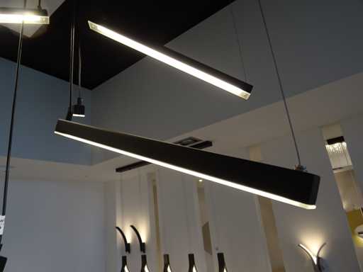 Couleur : Structure noire ; Nombre de sources lumineuses : 5 ; La parcelle est suspendue à une hauteur d’environ 3,5 mètres ; Taille : 45 cm (longueur de la lampe)