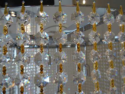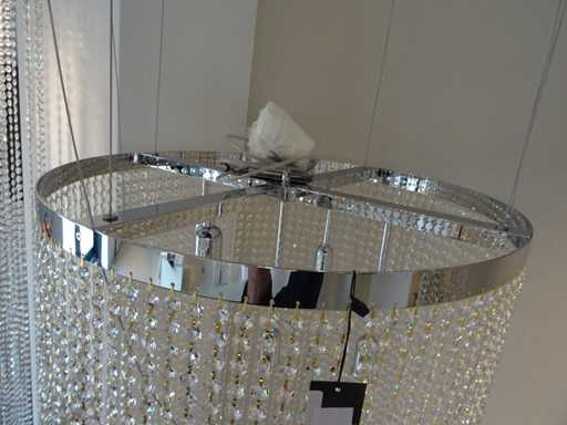 matériau : cristal de Swarovski ; Couleur : chrome ; Nombre de sources lumineuses : 5 ; équipée de +- 8 100 cristaux Swarovski ; Dimensions : 160x60 cm (HxDia)