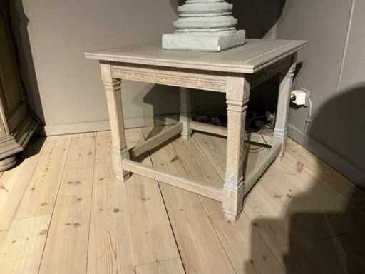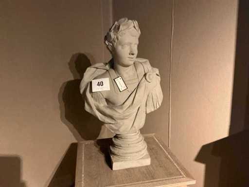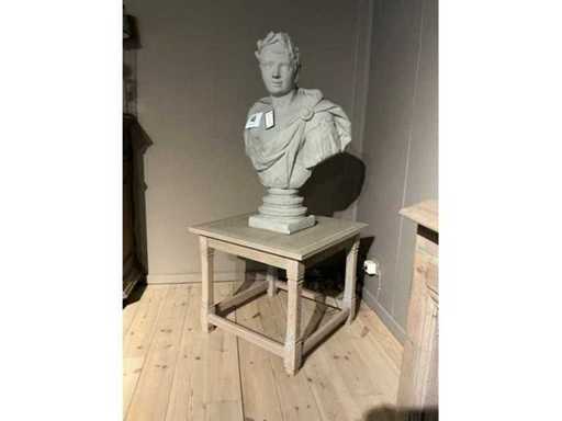 Représentant le « sénateur » aux dimensions d’environ 60 x 86 cm, avec une table d’appoint en bois d’environ 65 x 65 x 55 cm