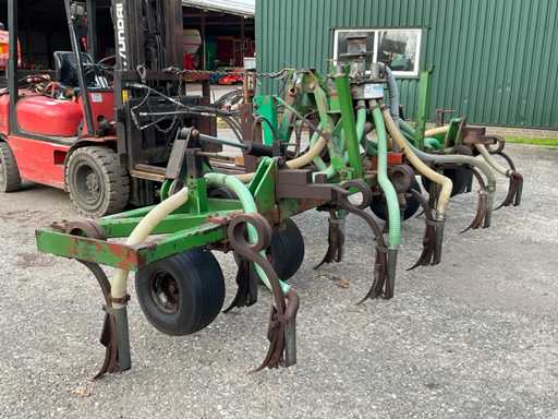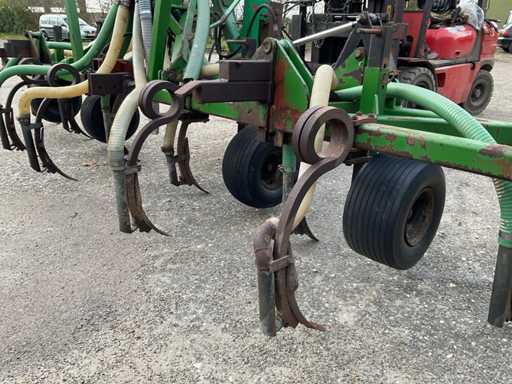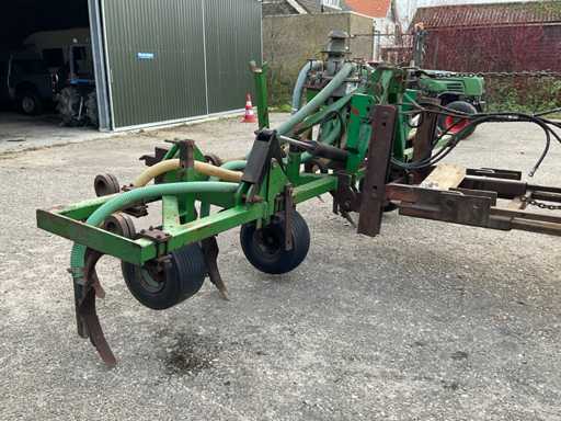 équipé d’une connexion à 3/4 points, d’un distributeur Vogelsang, de roues motrices, équipé également du mât porteur de l’injecteur Schoutenspider