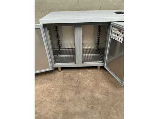 Établi réfrigéré en acier inoxydable avec 2 portes battantes et évier