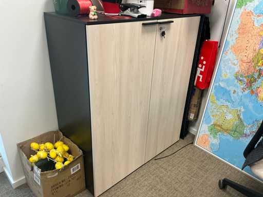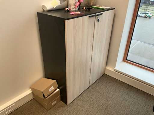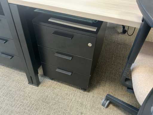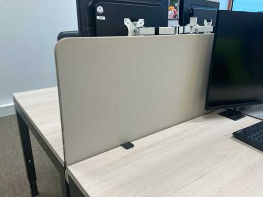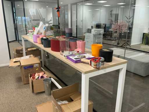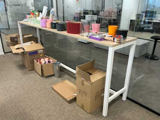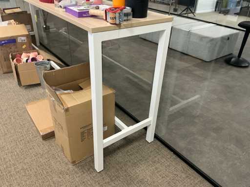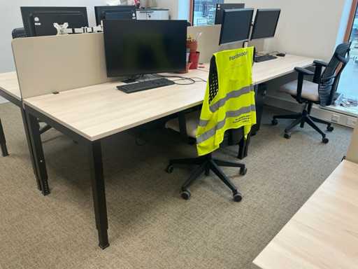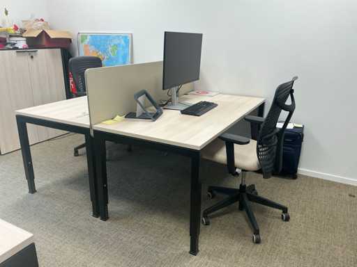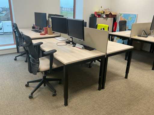 Composé de : bureau Bralco 6x (160x80x75 cm), 2x armoire de rangement (100x46x118 cm), table de bar (320x60x110 cm), 6x chaise de bureau et 6x commode. Les moniteurs, stations d’accueil et autres marchandises ne sont pas inclus.
