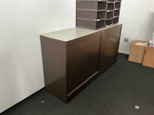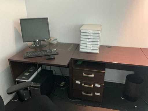 Composé de : bureau d’angle en forme de L avec bloc de tiroirs coulissants, dimensions : 180 x 260 x 73 cm, dimensions du classeur : 150 x 38 x 75 cm, Dell de surveillance, 2x chaise de bureau, sauf administration, comptabilité et bureaux de bureau !!