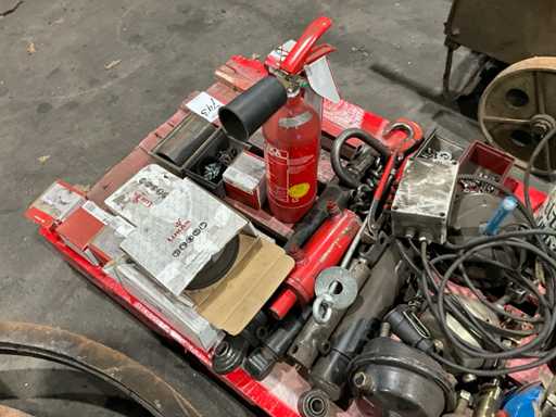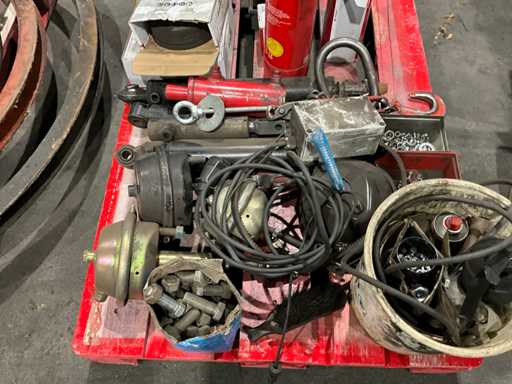 Divers sur et avec une seule palette, incluant des pièces de freins pneumatiques, des cylindres, des disques de meulage