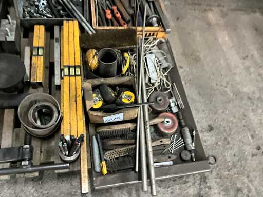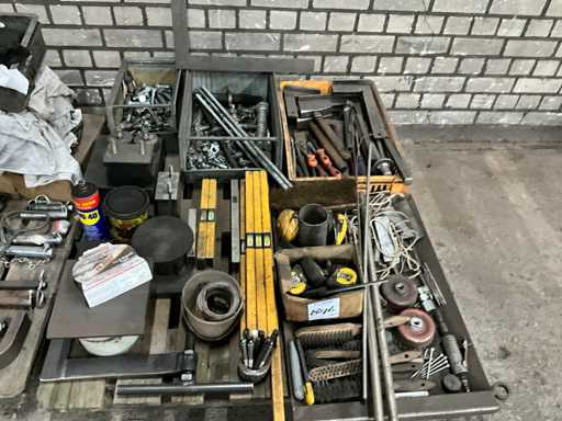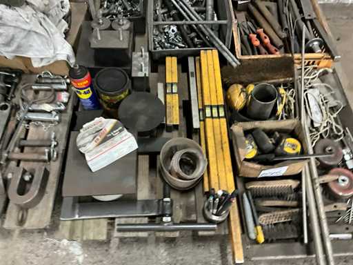 Sur et avec 2 palettes, incluant des colliers colle, un cric à bouteille, la force de force, les fixations, les tissus, etc