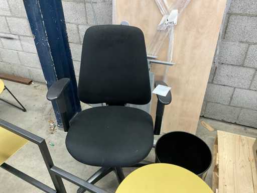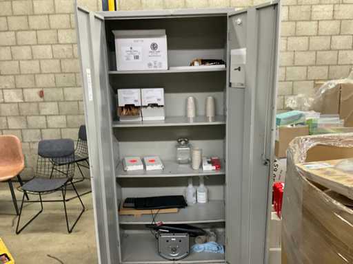 Composé de 2 bureaux, d’un classeur de 180 x 80 et 150 x 75 cm, d’une chaise de bureau de 197 x 92 x 44 cm et d’un mobilier de présentation.