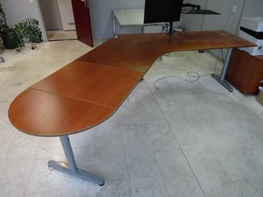 Composé de 2 bureaux d’angle, 1 unité à tiroirs, 3 meubles bas, 6 meubles hauts