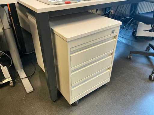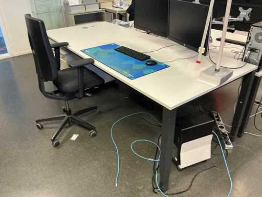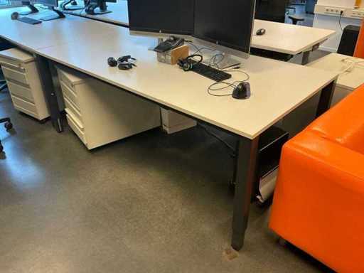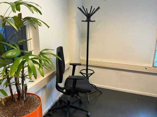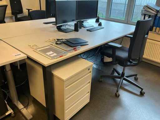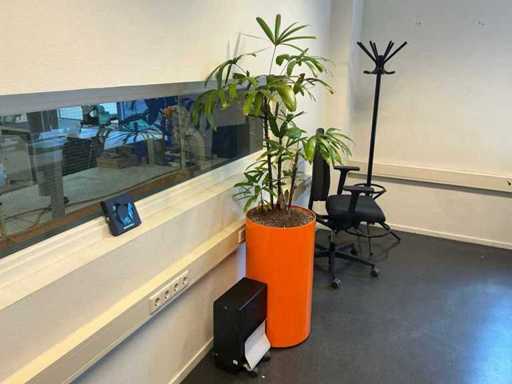 Le terrain comprend 6 bureaux de 200x100cm et 240x100cm, 7x chaises de bureau, 6x unité à tiroirs, poubelles, porte-manteaux, vitrine et plantes en pot