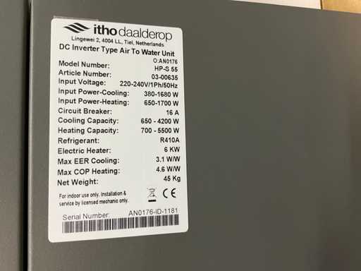 Itho daalderop HP-S 55 Pompe à chaleur unité intérieure 6 KW