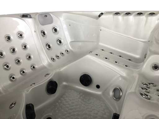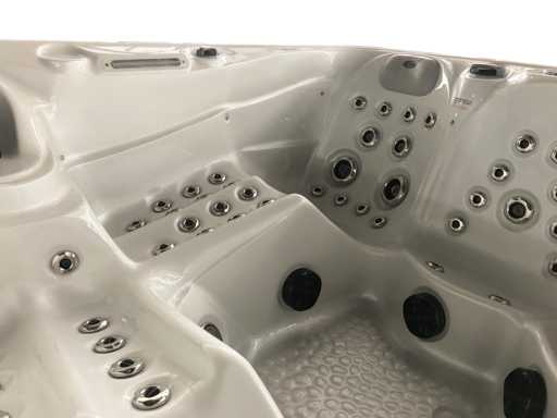 Type : PF SPA WIFI 2021 BLANC. Équipé de : Système de contrôle Balboa BP6013G3 + TP600 - Module WiFi - Isolation - Jupes en plastique - Plaque inférieure du couvercle - Couvercle thermique noir - Cartouche filtre - Pompe à eau (pompe de circulation LX 0,5HP) - 3 pompes de massage (2x pompes à eau LX 3HP et 1x pompe de massage 2HP) - Éclairage Spa - Ozonateur (désinfecte le jacuzzi après utilisation) - 3 appuie-têtes - Drain : 6 aspirations - Jets d’air - Cascade (cascade) et détendeur cascade - Escalier en PVC - Souffleur d’air LX pour alimenter l’eau du spa