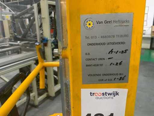 Tijdens de ophaaldag is een vorkheftruck met chauffeur beschikbaar, die kosteloos gebruikt kan worden. De maximale hefcapaciteit bedraagt 1,5 ton.