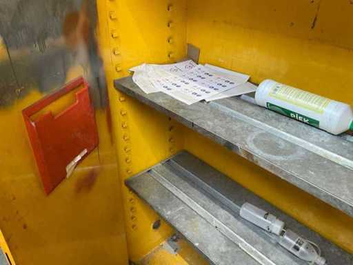 Équipé de 2 étagères par placard (100x36 cm), épaisseur d’armoire d’environ 4 cm, verrouillable, préparation automatique d’extincteur