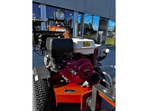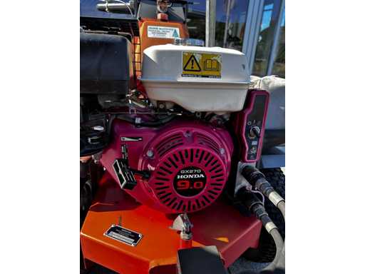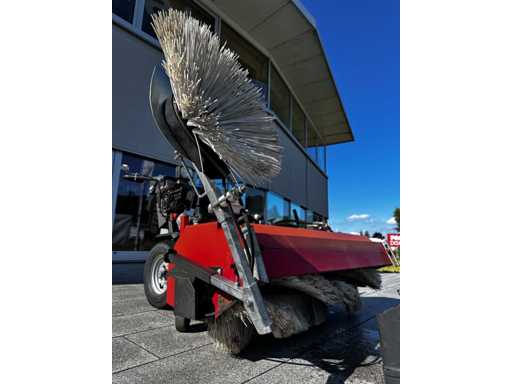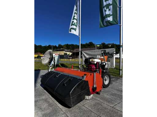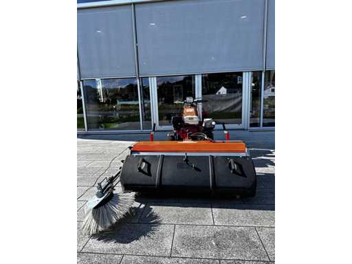 Moteur essence industriel Honda GX 270, Puissance moteur 6,3 kW (8,4 ch), Réservoir de carburant 5,3 litres, Consommation de carburant 2,4 l/h à 3 600 tr/min -1, E-Start, Entraînement : Hydrostatique, Vitesse de conduite ajustable à l’infini : avant/arrière 0-7 km/h, Système de direction : différentiel, Frein à main, Capacité de pente jusqu’à 20° (36 %) Guidon : réglable et amorti par vibrations, PTO : puissance hydraulique 12 l/min à 165 bar réglable à l’infini, Réservoir d’huile hydraulique 8,5 litres, Balayeur : 125 cm de largeur,