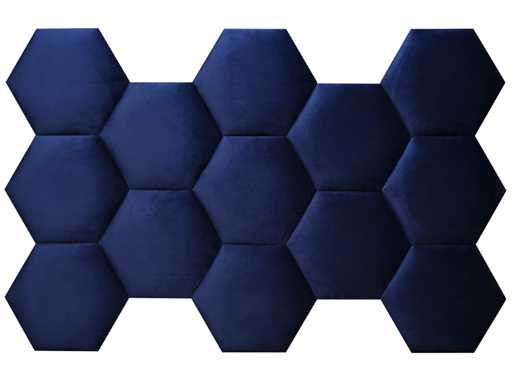 Comprend : Article 20550204, Textile de Velours de luxe Bleu Hexagone, produit : 30 x 26 x 3,5 cm, 97 pièces au total, par 24 pièces dans une boîte maître, surface par pièce : 0,06 m2, surface totale : 5,82 m2.