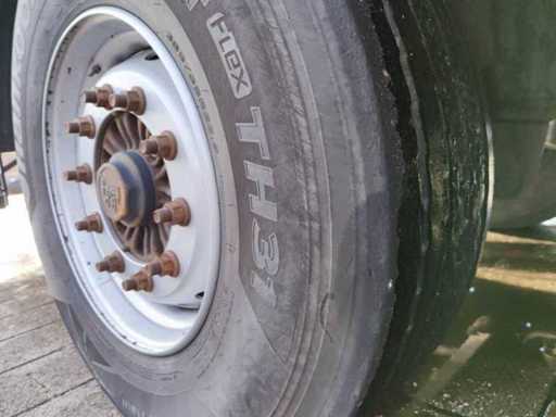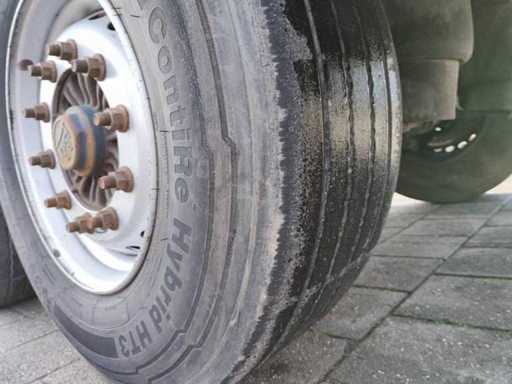 Équipé de freins à disque, suspension pneumatique, châssis galvanisé, bâche étanche, boîtes à outils, plancher de 10 mm, portes arrière et ABS, pneus environ 60 %