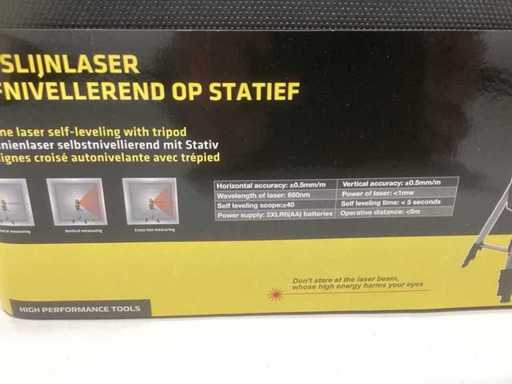 Laser de construction auto-nivellant Benson - Laser à lignes croisées avec trépied Caractéristiques : Auto-nivellement : +4 degrés /- 4 degrés pour une grande précision Trépied à 3 étages : flexibilité pour ajuster la hauteur Classe laser 2 : Sans danger pour l’œil et extrêmement précis Portée laser 10 mètres : largement suffisante pour la plupart des travaux en intérieur Tête rotative à 360 degrés : Couverture complète de l’espace de travail Projets Lignes horizontales et verticales : Extrêmement adapté à une multitude de métiers Temps de travail : jusqu’à 10 heures sur 2 piles AA (incluses) Protection : IP54, adapté aux conditions poussiéreuses et humides Température de fonctionnement : de -10 degrés Celsius à 45 degrés Celsius Dans un boîtier de rangement pratique : pour un transport facile et un stockage sûr Réglable jusqu’à 80 cm de hauteur et vous pouvez aussi l’étendre de 32 cm. Mots-clés : Laser de construction, Laser auto-nivelant, Laser à lignes croisées, Laser de construction à trépied, Outils de nivellement, Outils de mesure, Nivellement professionnel, Outils de construction Benson, Laser à tête rotative, Laser DIY