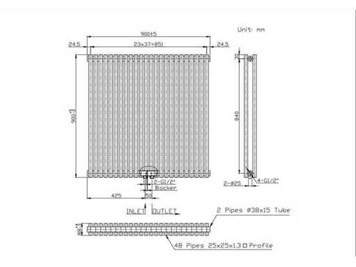 H900 x W900 mm Radiateur à conception horizontale, double avec connexion centrale - 2278 Watts - Couleur MAT NOIR - Tubes carrés - 48 (24x2) Montage mural inclus - Jeu de prises de design non inclus