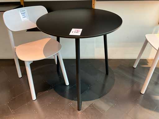 Composé de 2x chaise et 1x table, dimensions : H74xP70cm