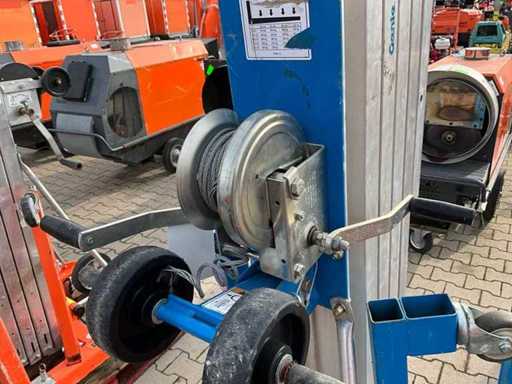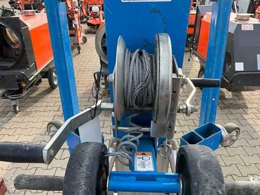 à commande manuelle ; mobile ; acier galvanisé ; treuil en câble métallique ; base repliante ; treuil en câble métallique ; Application : travaux de maintenance / assemblage / travaux d’installation ; incomplet ; ne fonctionnant pas ; Câble en acier défectueux