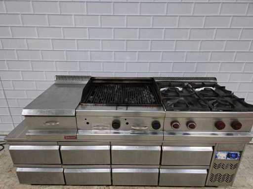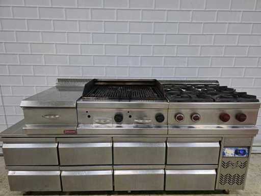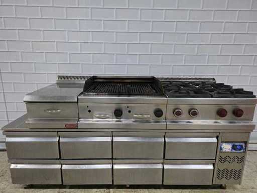 Ligne complète de cuisson/refroidissement - Établi réfrigéré - Cuisinière à gaz diamantée - Barbecue en lave diamantée