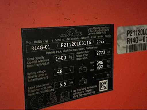 Linde R14G-01 1400KG Camion Étendu pour Terrain Accidenté 2022