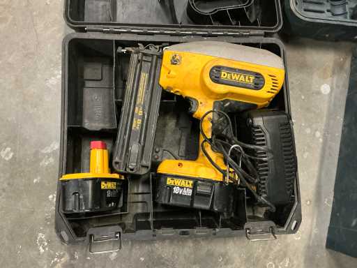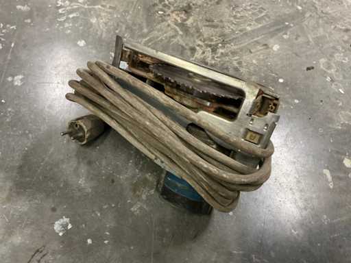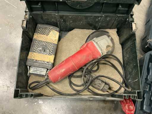 Lot d’outils électriques composé d’une machine à ongles Dewalt mini Brad, d’une scie à onglets Hitachi, d’une machine à tirer sur les ongles, d’une perceuse AEG, d’une ponceuse bleue Bosch, d’une fraiseuse bleue Bosch, d’une rectifieuse Milwaukee, d’une ponceuse plate Bosch, d’une scie à onglets Black&Decker, d’une raboteuse Elu. En état de fonctionnement à l’exception de la fraiseuse Bosch (ne fonctionne pas).
