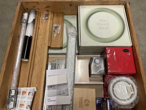 - Par exemple, des anneaux électriques, des accessoires pour machine à café, des étagères murales en bois, des sources lumineuses, un rideau solaire pour puits de lumière, etc.