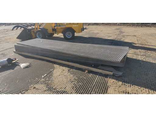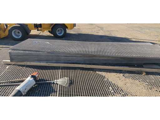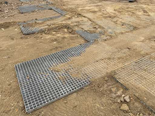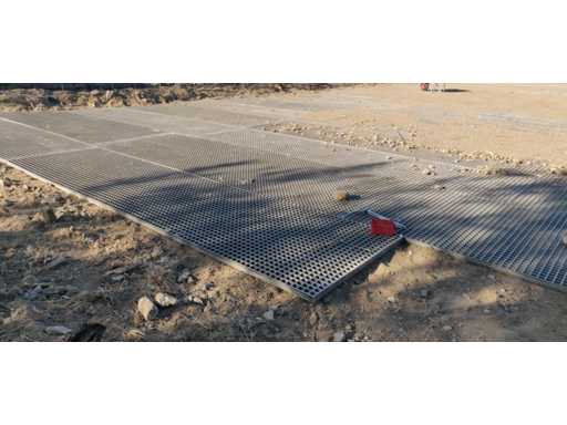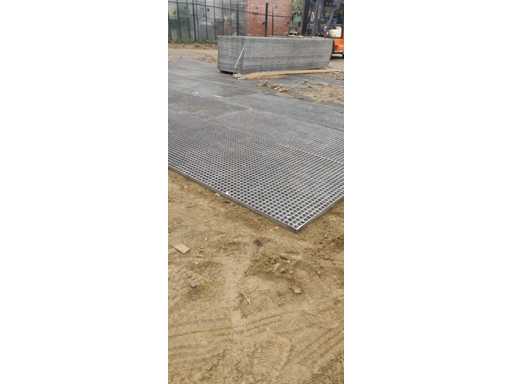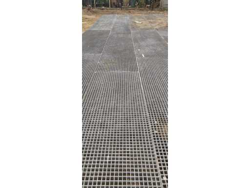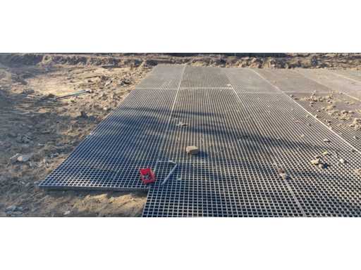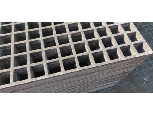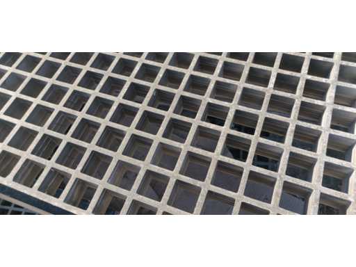 1 paquet complet de 25 pièces (111,63m2) - peut être chargé par le vendeur - Grille FRP en plastique renforcé de fibres (Fiber Reinforced Plastics) - taille des mailles 38x38 mm - hauteur 38 mm - dimensions 1220x3660 mm - poids par plaque 93kg - couleur ; gris RAL 7039 - convient pour les sols, les plaques de route ou le pavage de terrain.