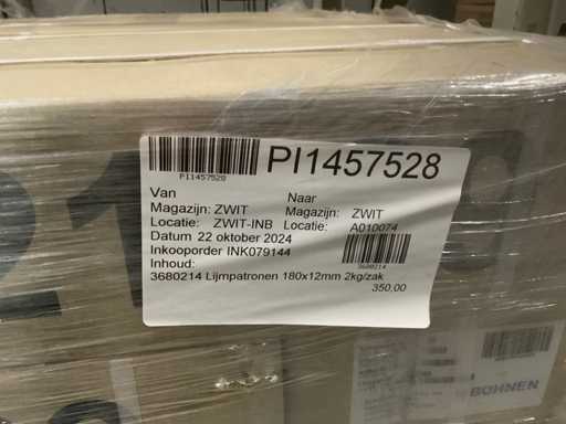 1 palette, env. 34 boîtes de bâtons de colle, 180x12mm 2kg/sac, y compris palette