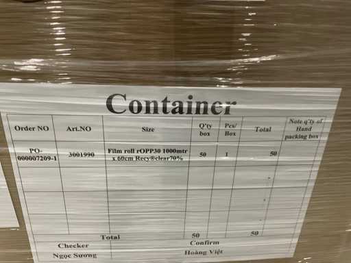 1 palette, env. Rouleau de film 50 pièces rOPP30 1000 mètres x 60cm, y compris palette