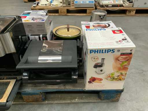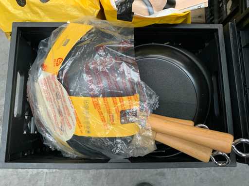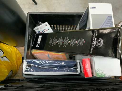 Diverses fournitures de cuisine, par ex. gril, bouilloire, poêles, poubelle, lampadaire, etc.
