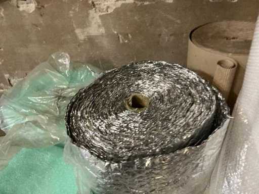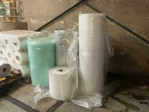 Divers articles, dont un rouleau de film plastique 15x ; 4 rouleaux de papier bulle variés ; 2 rouleaux de carton