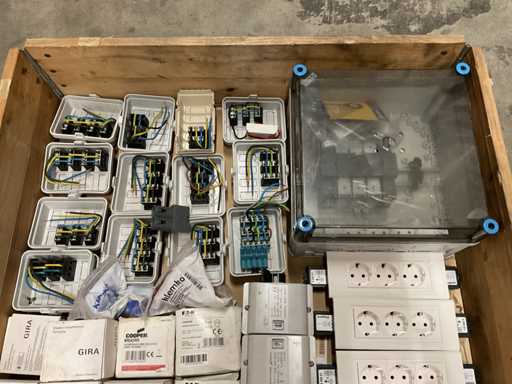 - o.a. stopcontacten, lasklemmen, afdekramen, schakelkast, aansluitsnoeren, etc.