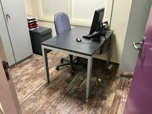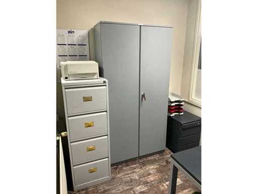 Composé de 2 bureaux avec chaises et unités à tiroirs ; 3 classeurs ; Placard et jardinières à deux portes