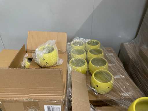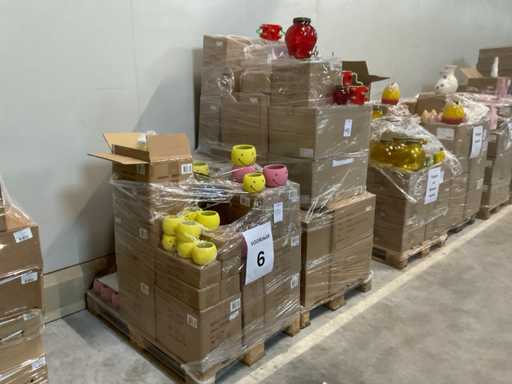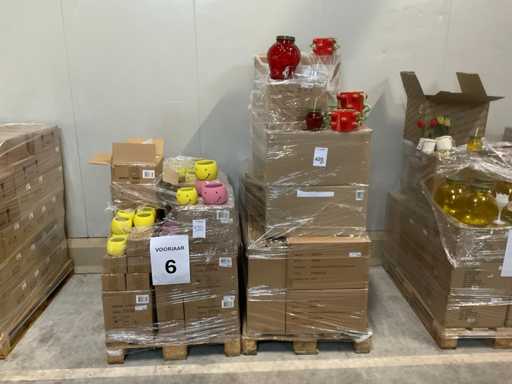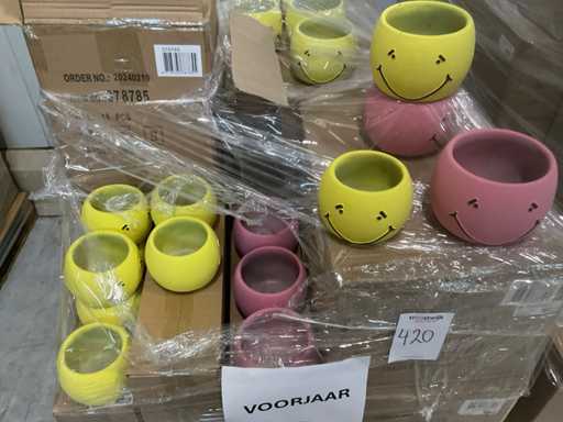 2 palettes, y compris des pots en terre cuite, de différentes couleurs et tailles, y compris des palettes