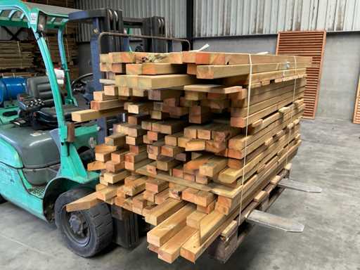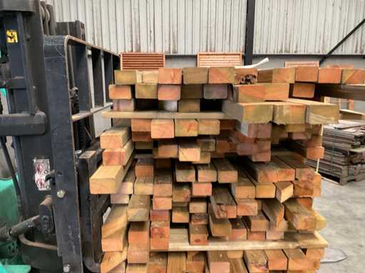Lot de poutres imprégnées de pin 80-180x6,5x4,5 cm. Se compose de différentes longueurs 80-180 cm, un total d’environ 250 mètres courants. Voir les photos pour plus de détails.