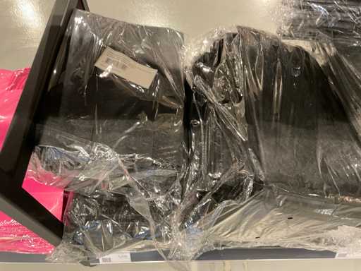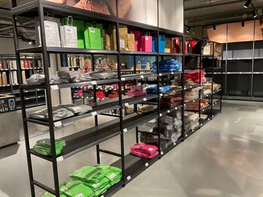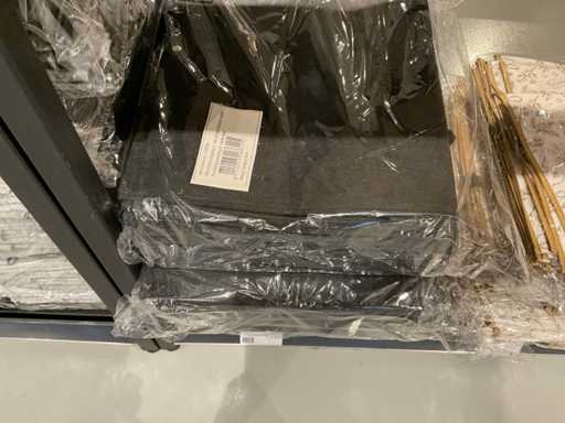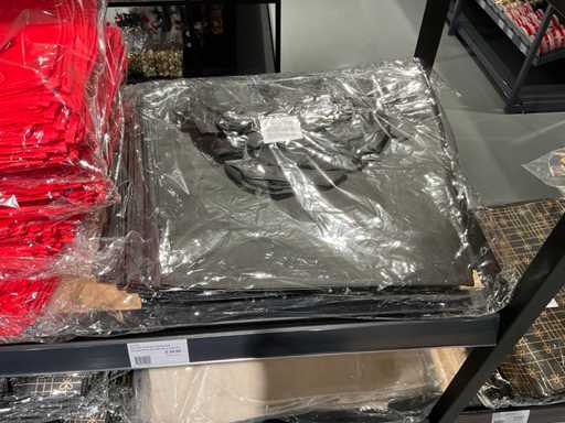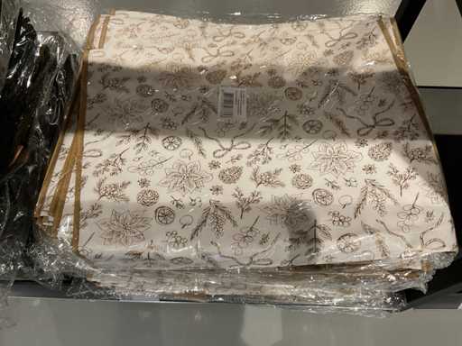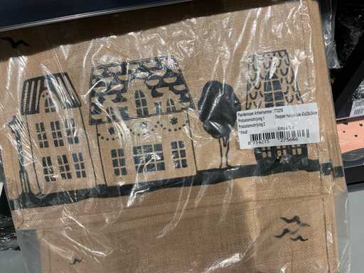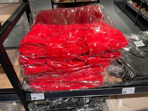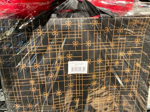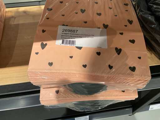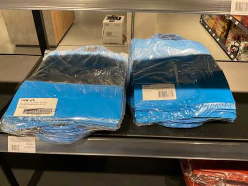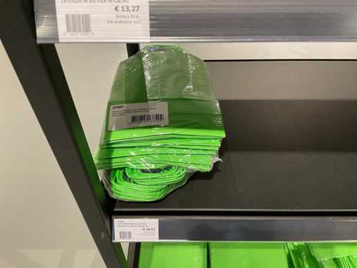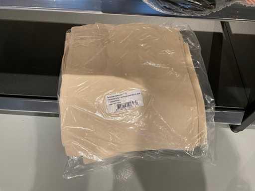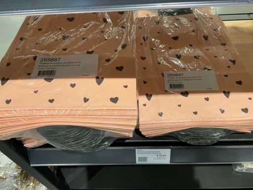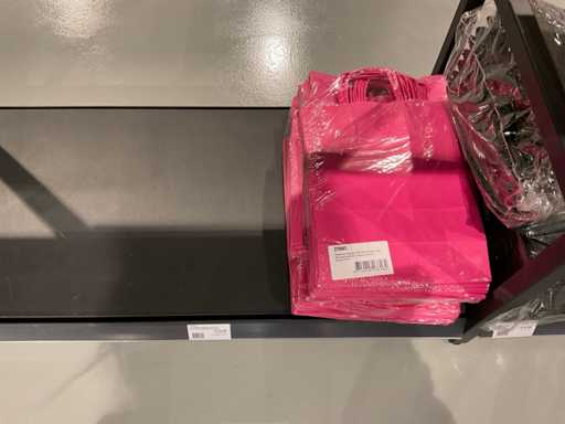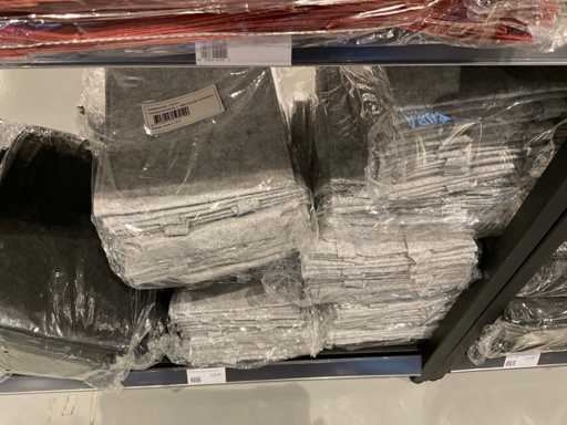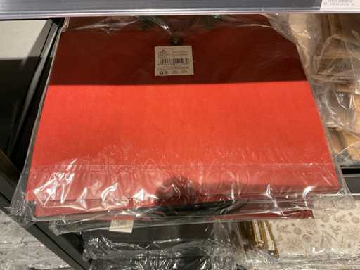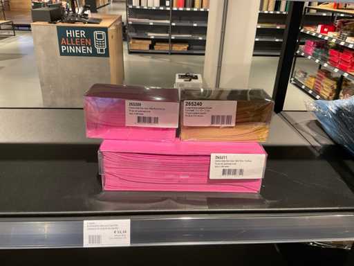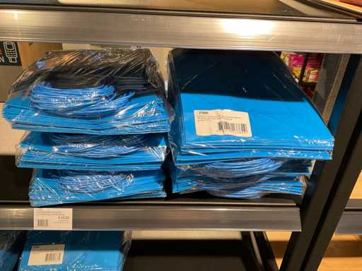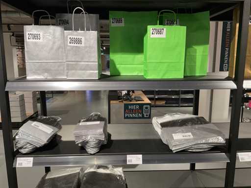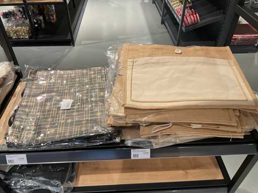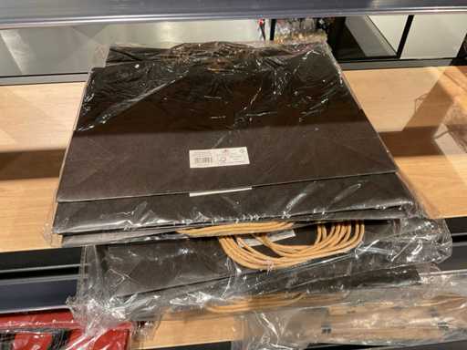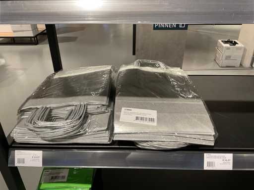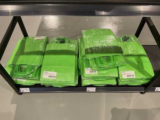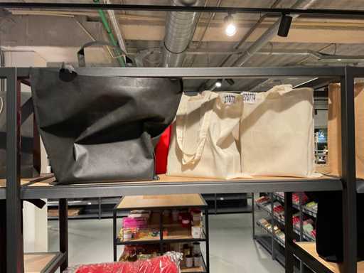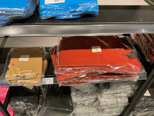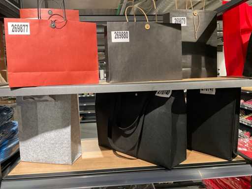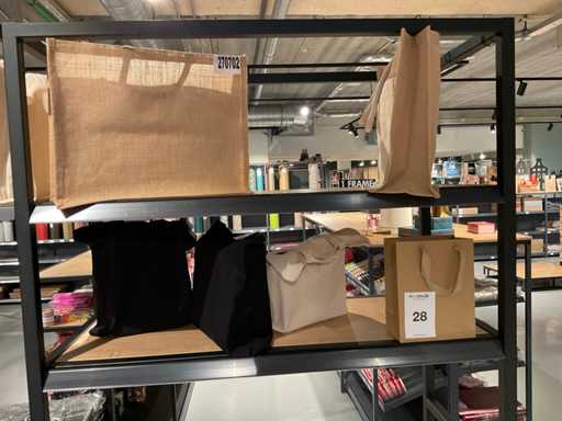 Le contenu du support, composé de différentes tailles de papier, de feutre, de jute, de sacs de transport non tissés. Hors rack.