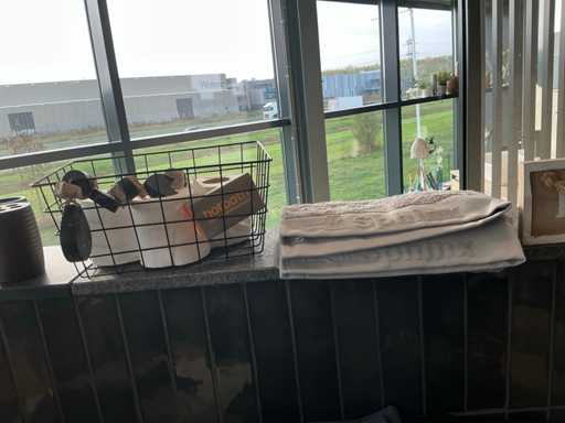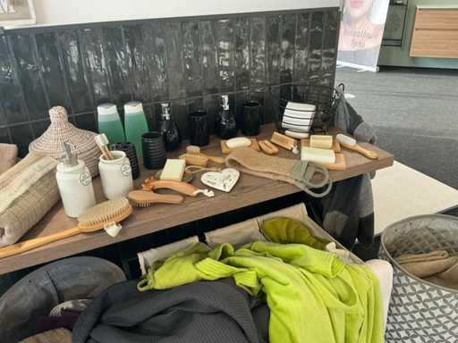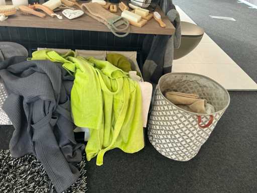 Serviettes diverses, peignoirs, tapis, porte-savon, etc.