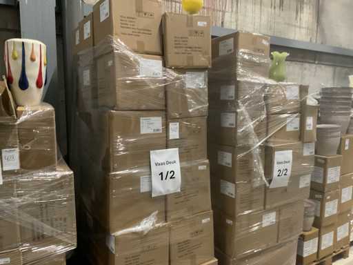 3 palettes, y compris des vases en faïence et en verre, différentes couleurs, y compris des palettes