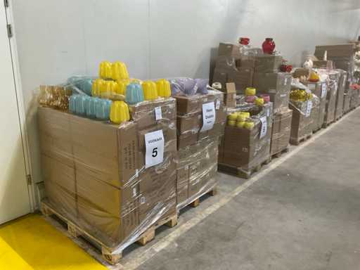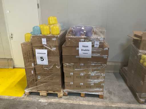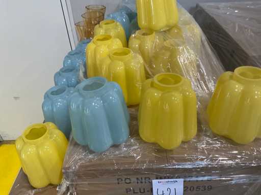 2 palettes, y compris des vases en verre, de différentes tailles et couleurs, y compris des palettes