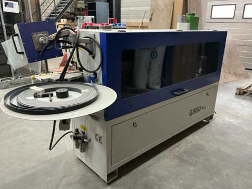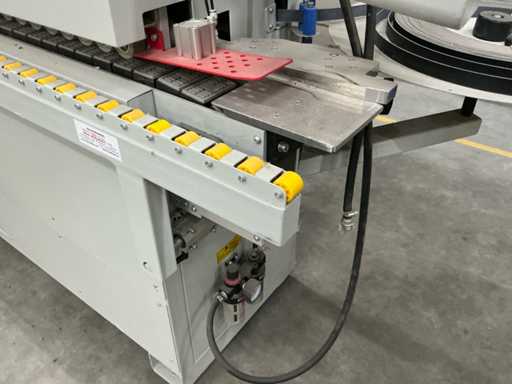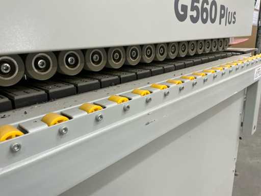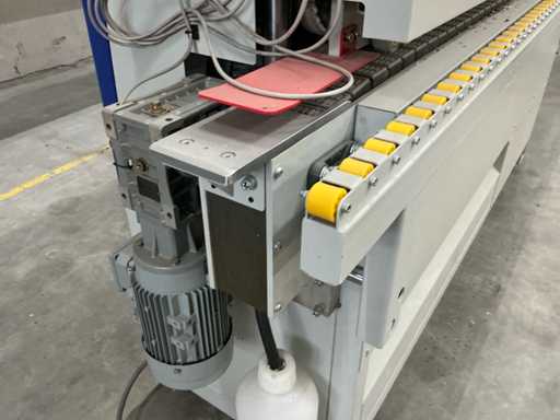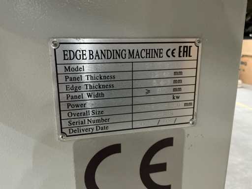 Épaisseur du panneau : 12-15 mm, épaisseur du bord : 0,4-3 mm, largeur du panneau : 80 mm, 5,96 kW, lecture des heures 20 heures. La machine fonctionne. Y compris un convoyeur à rouleaux.