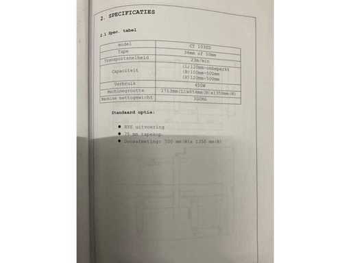 Bande : 36 ou 50 mm, vitesse de transport : 23 mètres par minute.